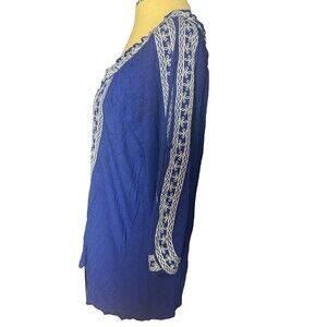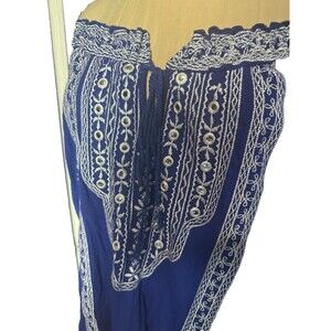 Elevate your casual wardrobe with the INC International Concepts Blue Metallic Off Shoulder Boho Top. This chic tunic-style blouse boasts an elegant off-the-shoulder neckline, adding a touch of sophistication to your everyday look. The long sleeves and comfortable rayon fabric ensure you stay cozy and stylish, whether you're out for a coffee or a relaxed evening with friends. Adorned with intricate embroidery, shimmering sequins, and playful tassels, this top merges contemporary design with bohemian flair. Available in size PS, the blouse fits regularly, making it a versatile addition to your collection. Its solid blue color provides a canvas for accessorizing, ensuring that your outfit is a true reflection of your personal style.