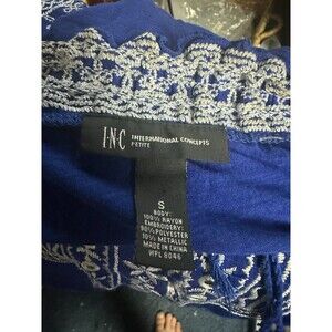 New INC International Concepts Blue Metallic Off Shoulder Boho Top Shirt Sz PS