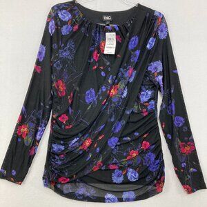 New INC International Concepts Large Dark Floral Printed Mesh Surplice Top