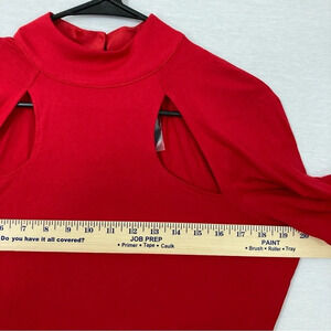 New INC International Concepts Red Cut Out Detail Long Sleeve Top Size Large
