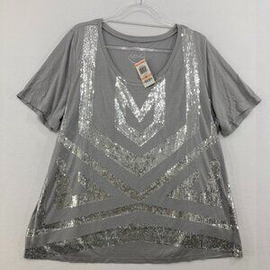 New INC International Concepts size 2X Gray Sequins Stretch Knit Top Festival