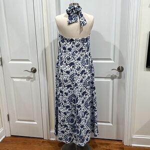 New! INC International Concepts Maxi Dress Blue Batik Pockets Halter Size Small