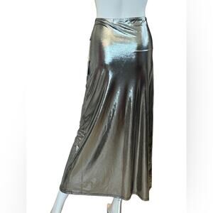 New ~ INDIGO SUN ~ Elastic Waist Silver Midi Skirt Size M
