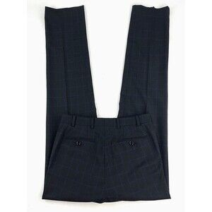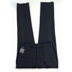 New INDOCHINO Mens Dress Pants Trousers 29x35.5 Black Blue Wool Windowpane 159$