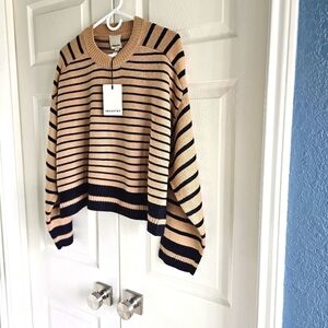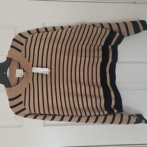 New INDUSTRY REPUBLIC CLOTHING Saddle Stripe Crewneck Sweater XL Khaki/Navy