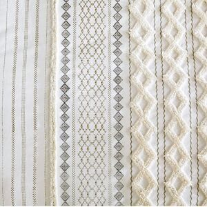 Bring a soft, mid-century look to you bedroom with the INK+IVY Imani Cotton Duvet Cover Mini Set. The ivory cotton duvet cover features geometric prints with tufted chenille that adds dimension and charm, while the solid ivory reverse complements the eye-catching patterns seen on top of the bed. A button closure and four inside corner ties allow you to place and secure a comforter insert within the duvet cover, for warmth and comfort. 2 cotton shams reiterate the designs of the duvet cover, creating a stunning coordinated look. Made from 100% cotton, this duvet cover mini set is machine washable and offers a refreshingly soft update to your bedroom décor.
