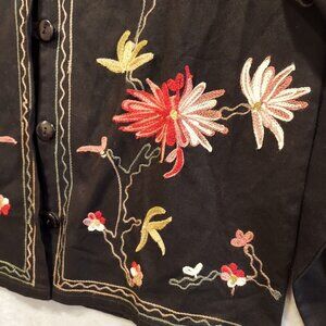 New Identity Jacket Womens M Black Floral Embroidery Artsy Art T Wear Boho retro