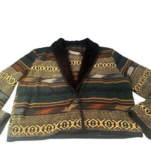 New Identity Southwest Tapestry Blazer Women Cropped Shawl Collar Western Cotton