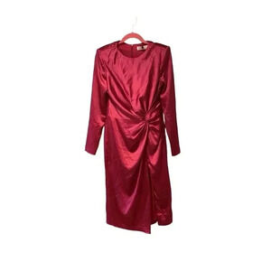 New Ieena Mac Duggal Magenta Side Twist Long Sleeve Satin Sheath Dress Size 6