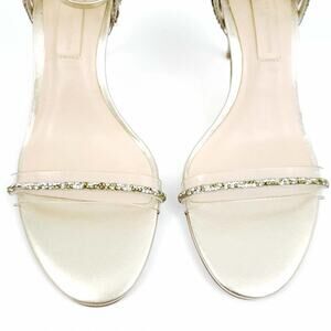 An elevated take on the transparency trend, the Phillipa sandal from Imagine Vince Camuto is styled with clear straps that are covered in a string of rhinestones. A halo ankle strap completes this dressy pair. Some marks on bottom from try on.