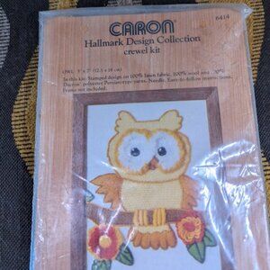 New In Bag Vintage Caron Hallmark Owl Crewel Craft Kit 1978