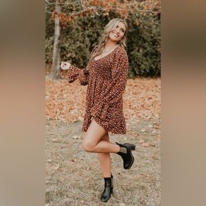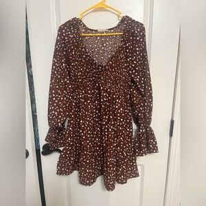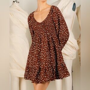 New In Boutique Chocolate Long Sleeve Mini Dot Dress Size Small