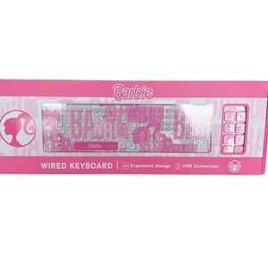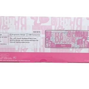 New In Box Barbie Logo Pink Wired USB Keyboard