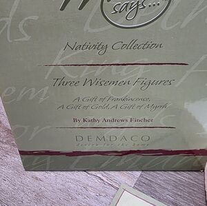 Charming nativity figures by Demdaco. Features three figures with intricate details. Ideal for festive decoration.