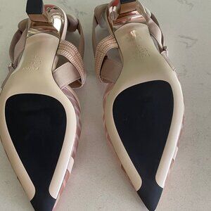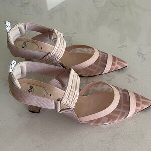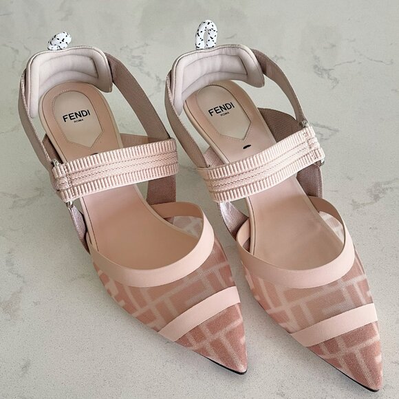 Never worn Fendi Colibri slingback with FF design in nude/pink. Size 40. I bought these and love them, but I can't wear heels after back surgery last year. My loss, your gain.
