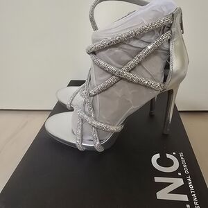 Step out in style with these elegant silver strappy heels. Perfect for any occasion, these shoes offer both comfort and sophistication.