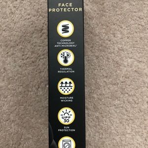 Brand New In Box Mens Face Protector/Mask. One size Fits All. Received two for Christmas as a gift. Wear around neck when not in use and lift up to protect your nose and mouth. Comfortable and easy to wear protection. No return or refunds.