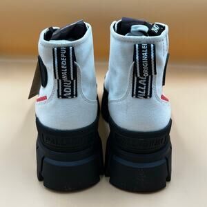 Step out in style with these New In Box Palladium Revolt Hi Tx Women's Boots in a striking Star White and Black colorway, size 7.5. These boots are perfect for adding a touch of urban flair to any outfit. While the box has some damage, the boots themselves are in like new condition. Please note that due to storage, the shoes may have slight dust marks and/or dye transfer. This does not detract from the overall quality and appearance of these awesome boots!