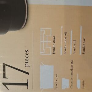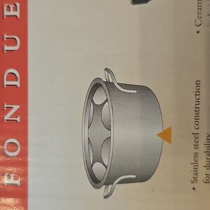 Includes Fondue pot, Fondue Stand, 6 forks,