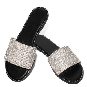 New In Box. Silver Rhinestone Slide Sandals