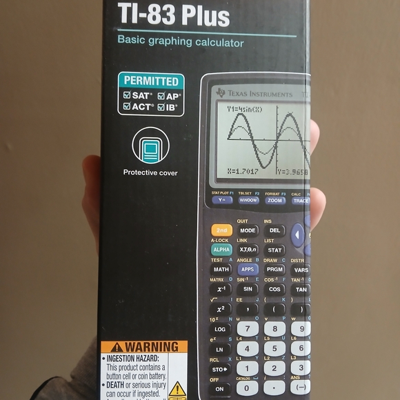 Texas Instruments TI-83 Plus graphing calculator. Features a protective cover. Ideal for SAT, ACT, and AP exams.
