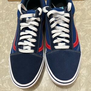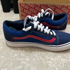 New in box Comfy Cush old school Vans. Low riders. Navy, red and white color scheme. Perfect condition. Never worn. Size 11 men’s.