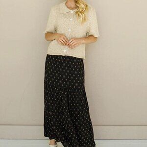 New In Collared Short Sleeve Taupe Knit Sweater Button Front Top Women's Large