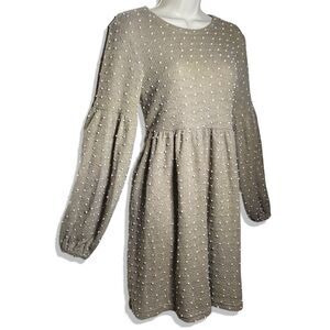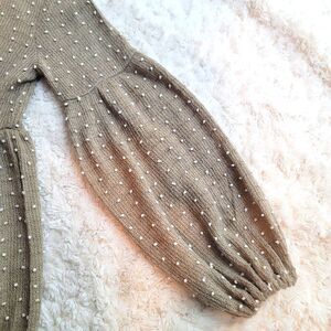 New In - "Mocha Swiss Dot" Puff Sleeved Polkadot Textured Textured Knit Dress