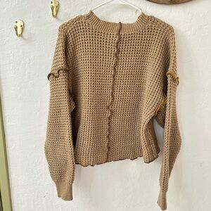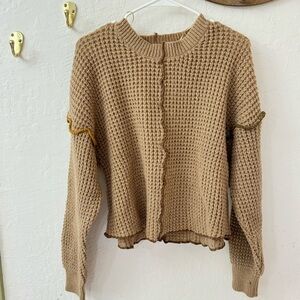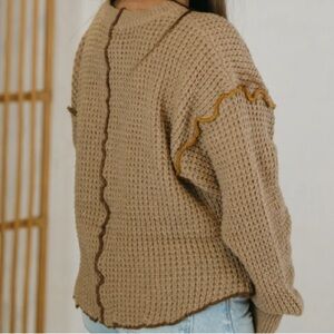New In Mocha Tan Brown Exposed Seam Stitching Drop Shoulder Waffle Sweater S