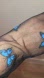 Stylish black tights featuring a blue butterfly pattern. Perfect for adding a whimsical touch to any outfit.