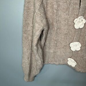 New In Rose Crochet Button Cabled Soft Beige Cardigan