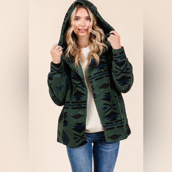 New In Womens AZTEC TRIBAL PRINT HOODED OVERSIZE FLEECE Cardigan | NEW/NWT!!