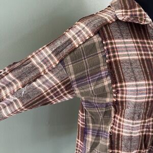 New In Women's Plaid Patchwork Button Down Shirt Size Small