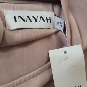 New With Tags Inayah Almond Sleeveless Maxt Dress With Tie Back , Back Zipper . Length 56 in , Waist 34 in , Pit to Pit 20 in . Same Day Shipping / Next Day . Modest Fashion , Minimalist