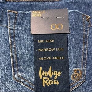 New Indigo Rein Ankle Mid Rise Jeans Juniors Size 00 Blue Dark Wash Cuffed. Smoke free home. Ships fast!
