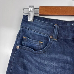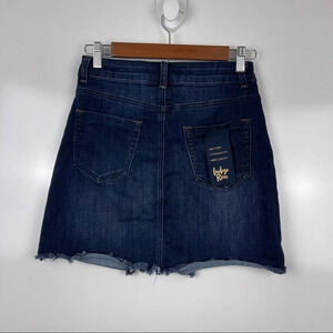 New Indigo Rein Dark Wash Mid Rise Cut Off Denim Mini Skirt Size 26