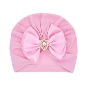 New Infant Pullover Bow and Gem Medallion Turban Hat Pink