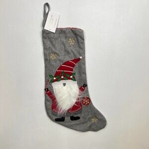 New Isaac Mizrahi Gnome Christmas Stocking 22" Gray Red Wool