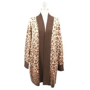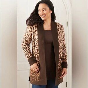 New Isaac Mizrahi Live! Brown Animal Print Jacquard Open Cardigan Sweater 1X