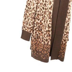 New Isaac Mizrahi Live! Brown Animal Print Jacquard Open Cardigan Sweater