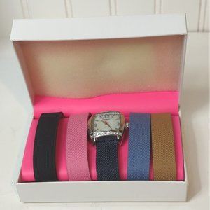 New Isaac Mizrahi Live Silver Stainless Steel Japan Movement Ladies Womens Watch. Multiple band color choices. This watch has never been used and probably made in the 90s, due to this it may need a battery replacement..