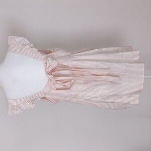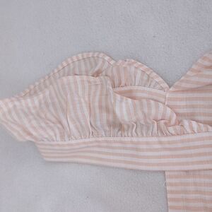 Cute ruffle sleeves top, color is peach and white, tie back - this is a cute statement.