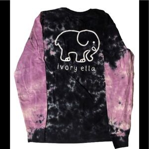 This is a brand new, in the bag, Ivory Ella orchid and black tie dye shirt. It is a long sleeve tshirt. It’s a size small, but fits like a small. It did not come with a price tag on it, but was in a sealed bag with a color and style tag on the bag. I took it out of the bag to photograph it.