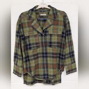 New Izzy Cargo Shirt checkered Olive Combo Free People szS small flannel plaid