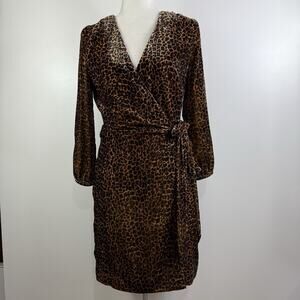 J Crew New Animal Print Velvet True Wrap Dress Size 0 V Neck Leopard Print