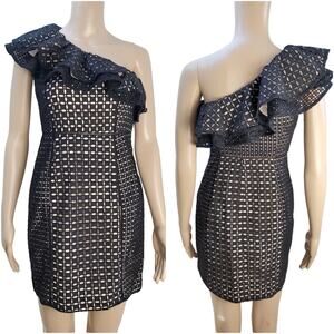New J. Crew Black One-Shoulder Eyelet Ruffle Party Evening Dress
