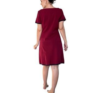 New J. Crew Burgundy Fit & Flare Dress Work Career Size 12 Cotton Knee Length