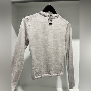 The fit of your favorite tee meets the feel of your favorite sweater. This easy layer sits closer to the body and is incredibly soft to the touch. It's crafted from smooth merino wool with a bit of stretch at the cuffs, so it's warm enough to wear on its own now and light enough to layer later. Plus, this one comes with sequin details along the collar for added shine.