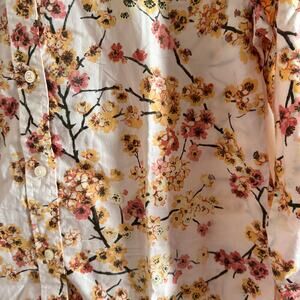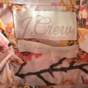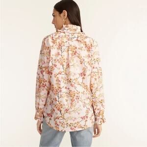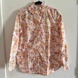 New J. Crew Cherry Blossoms Ruffle Neck Top Pink Multi Floral Long Sleeve Sz 4