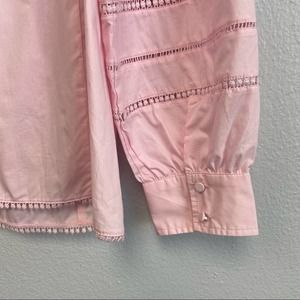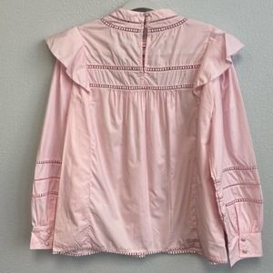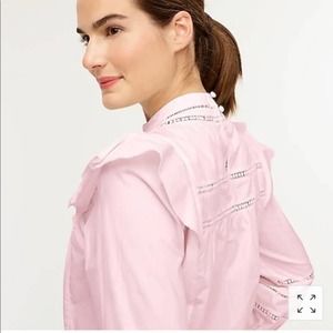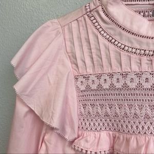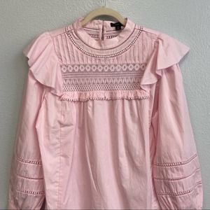 New J. Crew Crocheted Lace Flutter Sleeve Mock Neck Pink Top Medium